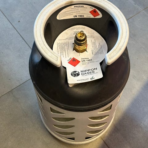 Regulator for "små" flakser(230/450g) kan følge med. Vanlig regulator for 5/10kg flakser kan også brukes.