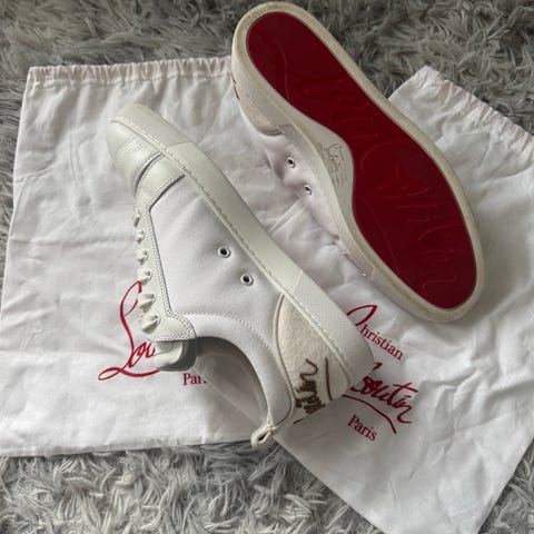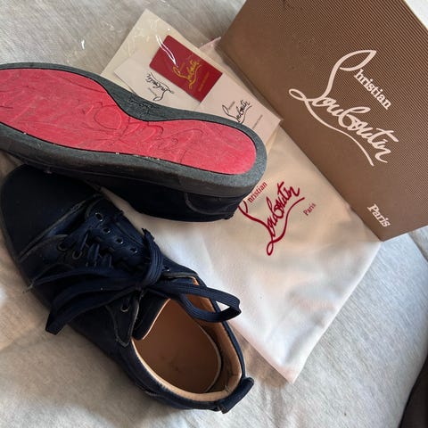 Kjøpt i november 2025 på Christian Louboutin butikk i London.(har kvittering, og salgsbevis) veldig pent brukt. Har boks, pose, skoposer, ekstra lisser, og papir som passer inni skoen. (Pris kan diskuteres, men ikke med mye.) Det går ikke an å få tak i disse skoene i Norge.)