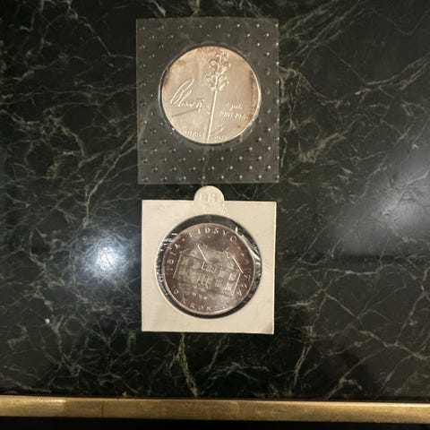 4 sølvmynter i foldere