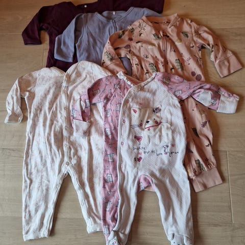 Selger fire pent brukte pysjer i str 62. Ingen flekker eller hull. Passer fint til både gutt og jente.
