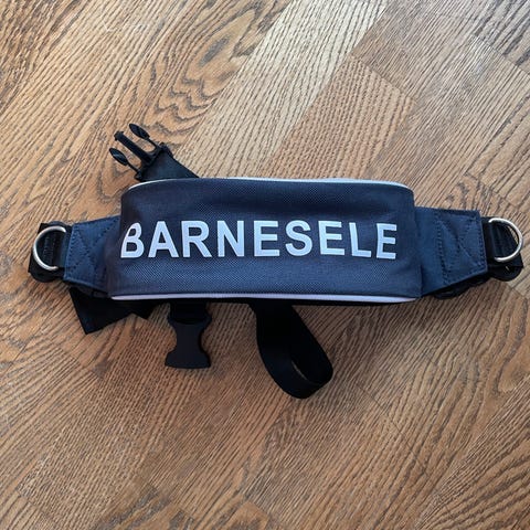Den har 2 ødelagte klips og fungerer ikke. Selve båndene man holder i fungerer fint.