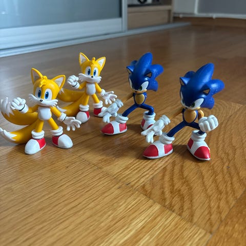 Figurene har bruksmerker. Det er spesielt Tails (den store figuren) som har flest bruksmerker. Se bilder for tilstand.