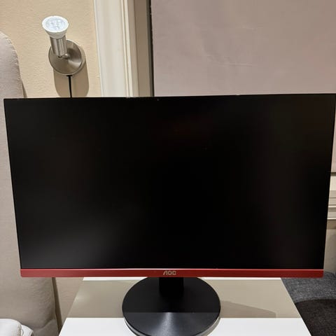 AOC 24" skjerm med AMD freesync og 75hz oppdateringsfrekvens. Den har svart ramme og rund fot. Skjermen har en størrelse på 24 tommer og passer til generell bruk som dataskjerm.