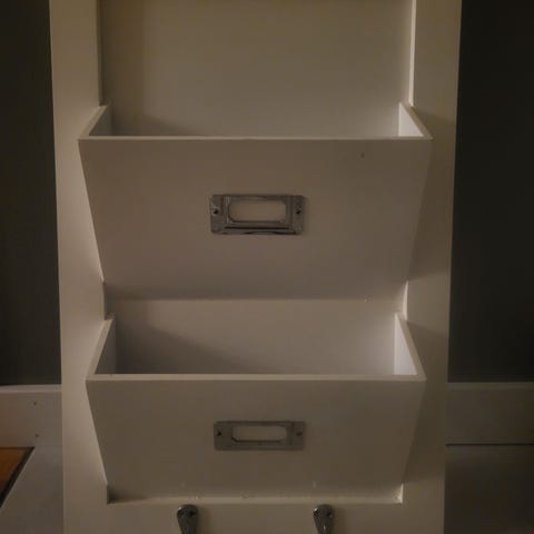 Kommode i lakkert furu. Lite og nett, treknotter på skuffene.