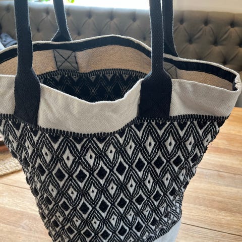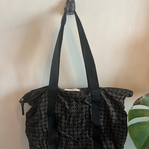 Praktisk Shopper fra Riesenthel. Vesken er i sølvfarget polyester med svarte håndtak. Meget solid. Vesken kan stenges med glidelås. Innvendig ekstra lomme også med glidelås. Praktisk både for shopping eller på reiser.