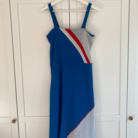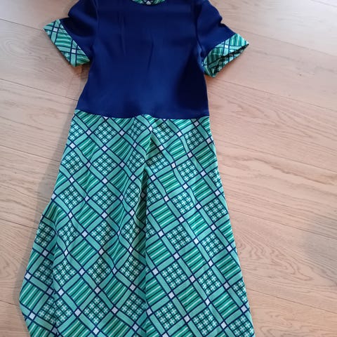 VINTAGE- RETRO - 1 MEGET FLOTT SID (LANG) KJOLE, Fremstår SOM NY!! Den er fra 1970!! Størrelsen er 36, som tilsvarer ca S. Lengen/høyden på kjolen er ca 130 cm. Bredde under ermene er ca 40 cm. Bredde nederst på kjolen er ca 58,5 cm. Har 7 små knapper foran (som gjør kjolen ekstra fin), de kan åpnes! Kjolen har en lang glidelås bak på ryggen, den er 50 cm, veier 330 gram. Kjolen er nyvasket (for hånd) og strøket. Meget lett å stryke kjolen. Er brukt kun 1 gang! Tror kjolen er i bomull (har ikke merkelapp). Se alle bildene. Kjolen kan sendes, eller hentes her i Sandefjord.