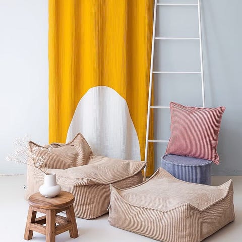 Bohem lista sekkestol. Den er fylt med skum, og er like behagelig å sitte i som den ser ut som! Stolen har også et vannfast trekk som gjør at den kan stå ute når det er nedbør, Mykt fyll - meget god sittekomfort Mål (BxDxH) 62,5x107x68,5 cm