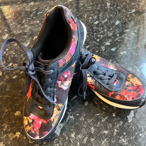 Jeg kjøpte dem på shein, de er prøvd på og prøvd brukt 1 gang men disse ble for små for meg desverre, de har en litt sånn kamuflasje mønster på seg, de er veldig myke og gode og gå i. Virker veldig solide i stoffet, og sålen virker solid med demping!
