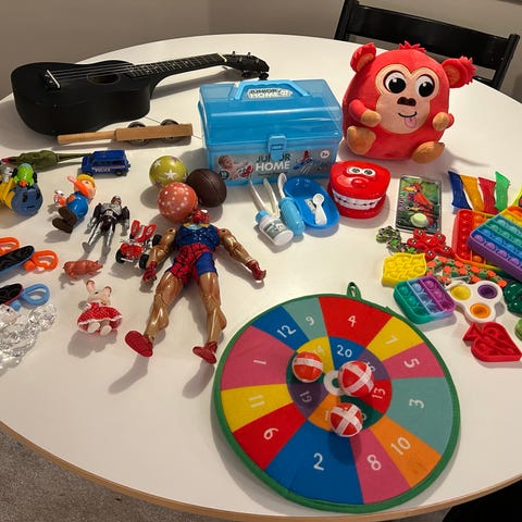 Disse lekene er tatt godt vare på men siden vi flyttet for et par måneder siden har lekene bare ligget i poser. De trenger nok en vask før bruk men de er kule for barn som liker og leke med biler og slik. Send melding ang pris