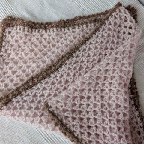 Selger et vakkert, håndlaget sjal heklet av 100 % alpakka-garn fra Drops.