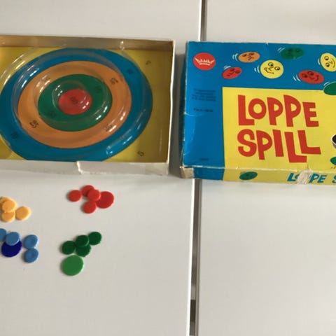 Gammelt spill fra Damm - mangler nok et par brikker, og den gule koppen er ikke original. Om ikke annet så kan jo esken brukes til noe annet, dekorativ sak i seg selv.