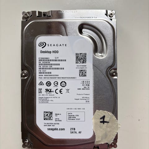 Seagate Desktop HDD ST2000DM001 harddisk med lagringskapasitet på 2TB. Harddisken har SATA-grensesnitt og er egnet for bruk i stasjonære datamaskiner. Produktet er i god stand med normal slitasje.