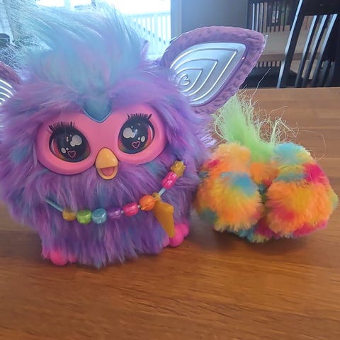 Furby fargerik barn leketøy med myk pels i flere farger og store øyne. Passer som interaktivt leketøy for barn.