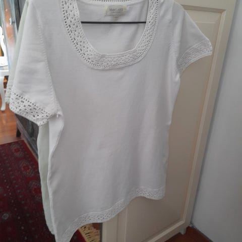 Marc Lauge Premium Collection T-skjorte i grønn farge, størrelse M. Laget av bomull med et mønster av hullstrikk. Kortermet design, tilpasset kvinner.