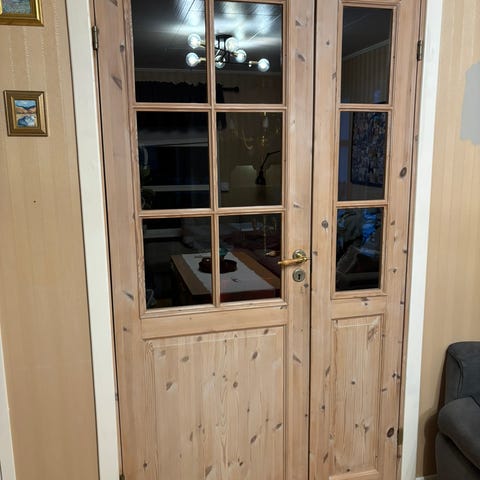Pent brukt furudør. Liten slitasje.