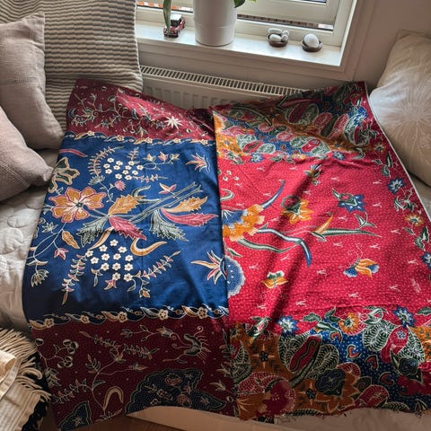Det går stoffet er klippet til skrå-skjørt, men mye stoff kan brukes, tiltross for dette.