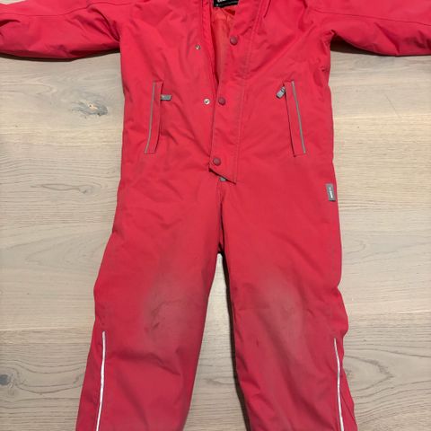 Brukt av 2 barn, så begynner å bli slitt på knærne og litt på rumpa. Men ellers i god stand uten hull og rifter, mye dress igjen😊