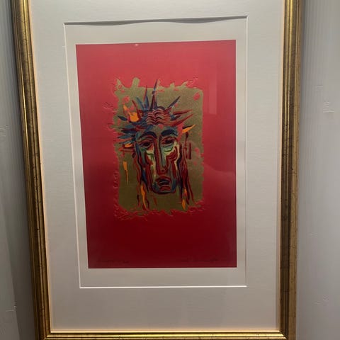 Bildet er innrammet hos fagmann, men mangler glass.