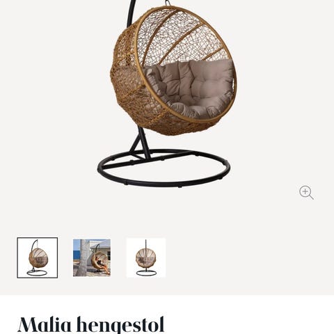Malia hengestol natur m/beige pute max 120kg kunstrotting svart stativ