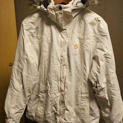 Str S, men loose fit, så den passer også M eller liten L. Vann og vindtett.