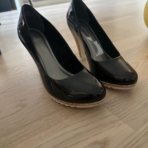 Marco Tozzi hæler i størrelse 39. Skoene er beige med åpen tå og dekorative hulldetaljer med metallnagler foran. Modellen har middels høy hæl og lukket hælkappe. Overdelen er i syntetisk materiale, og innsiden har myk innersåle for økt komfort. Passer som pene sko til bruk ved anledninger eller til hverdagsantrekk der man ønsker en enkel, nøytral hælsko.