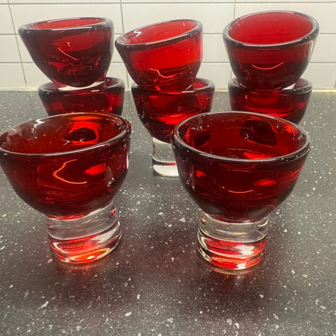 Grønn liten, 7 cm høy og 16 cm diam.