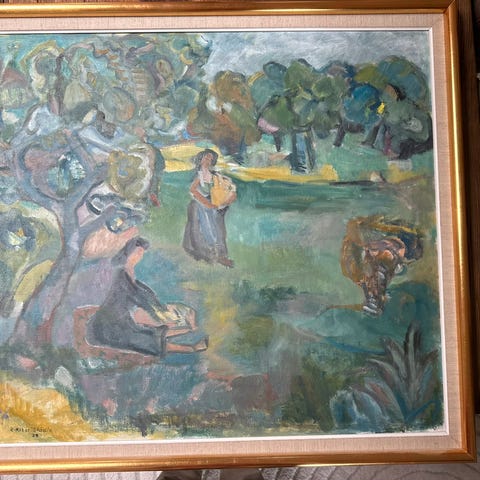 Bildet selges med finfin gammel ramme, se bilder for mål. Hentes på Raufoss eller sendes ved at kjøper betaler frakt, pakker godt ved sending.