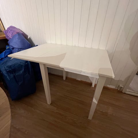 Spisebord gies bort. Trenger et malingstrøk. Medfølger ileggsplate som øker lengden til 200 cm.