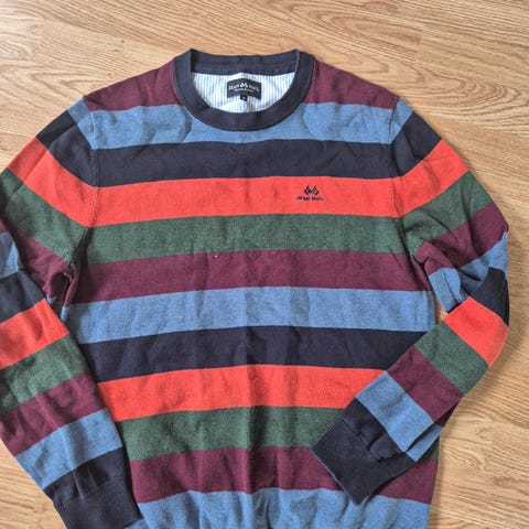 Pent brukt gant genser i str. XXL med rød/blå/mørkeblå sammensetning og en gant logo shield på ene siden av genseren. Denne er enda ikke vasket og er kun en måned gammel og bra behandlet så den merkes nesten ikke at den er brukt enda.