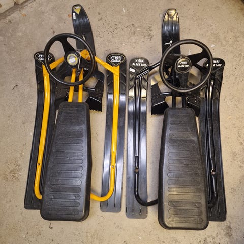 Stiga rattkjelke i svart farge med rattstyring. Egnet for barn for kjøring i snø.