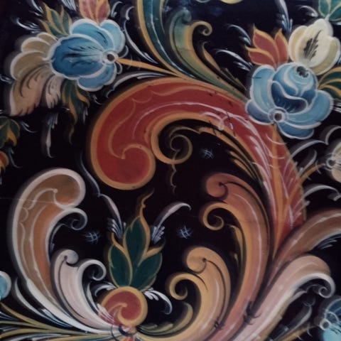 Brukt, med sjarmfull patina, riper og mindre bulker som vist på bilder. Dette er helt normalt for alderen og gir boksen et autentisk og nostalgisk preg. Motivet er fortsatt tydelig og dekorativt.