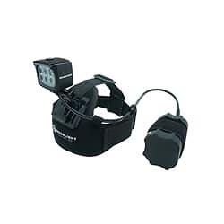 Moonlight Bright as Day 3000 hodelykt med tilbehør inkludert lader, batteri og festeutstyr. Lyset er designet for å gi sterk og klar belysning, egnet for blant annet ski og sykling.