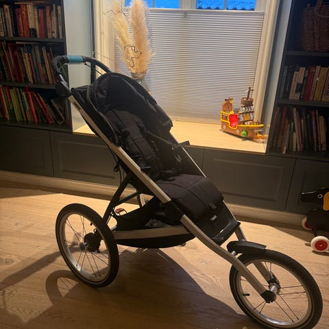 Thule Urban Glide 2 joggevogn med tre hjul, designet for utendørs bruk og jogging. Vognen har et svart sete og ramme, med justerbar ryggstøtte og stor solskjerm. Egnet for barn fra spedbarnsalder med god plass og komfort. Utstyrt med håndbrems og stor handlekurv under setet. Passer for foreldre som ønsker en praktisk og robust joggevogn.