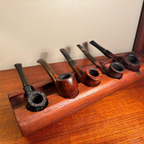 pipestativ, pipeholder, pipetilbehør, pipe, bordstativ, tre og metall, rustikk, vintage stil, pipe display