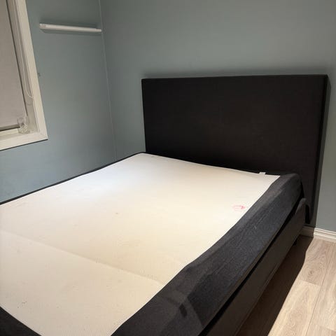 Den har ingen flekker eller skade, og fremstår pent brukt. Har alltid blitt brukt med overmadrass over.