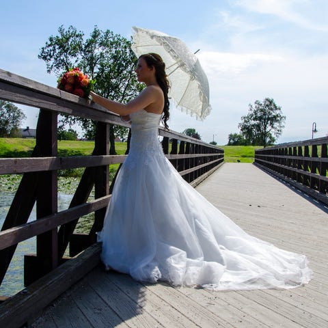 Selger brudekjolen min. Kjøpt ny våren 2025. Selges billig da den ikke er renset. Kan håndvaskes.