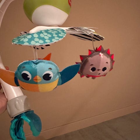 Nydelig lilla uro med sommerfugler i heklet materiale. Kommer i esken, og er ubrukt.