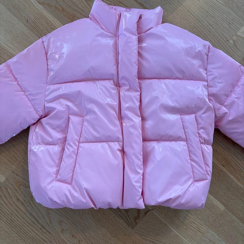 God og varm boblejakke til jente 10 år (140 cm). Brukt av datteren min en sesong. Beige og går til lårene. Noe merker på forsiden, men det kan nok vaskes vekk (har ikke prøvd).