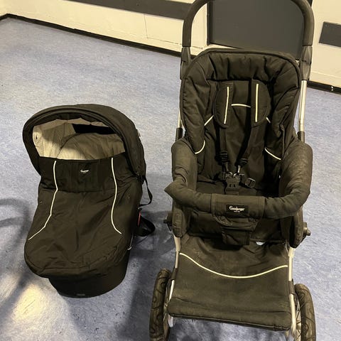 Emmaljunga barnevogn Nxt 90. Kjøpt Brukt, har selv bare brukt den i 10 mnd til spebarn. Det er en sånn rund greie ved håndtaket jeg har mistet. Så håndtaket kan ikke justeres. Men vil tro denne delen kan bestilles. Det ene hjulet var punktert og slitt. Jeg har derfor kjøpt helt nye dekk bak som kostet ca 800, med slange også. Disse har jeg ikke satt på. Har kvitering på dekka. Har også en svart sidebag som kan medføge for 800 ekstra.