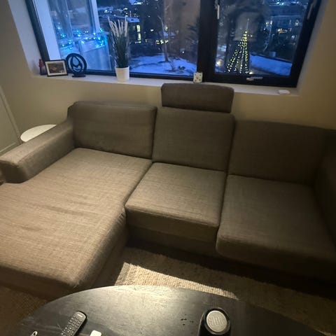 Selger en pen hjørnesofa pga flytting. Den er god å sitte i og pen å se på. Målene er ca 280cm bred og 190 cm dyp