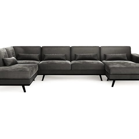 Sofacompany: Mørk grønn velur sofa med sjeselong