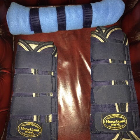 Terrengbeskyttere Veredus E-vento. Str M. Farge sort. Lite brukt pga var for små til min hest. Pris kr 400 for frambein. Pris kr 500 for bakbein. Pris for begge kr 800.