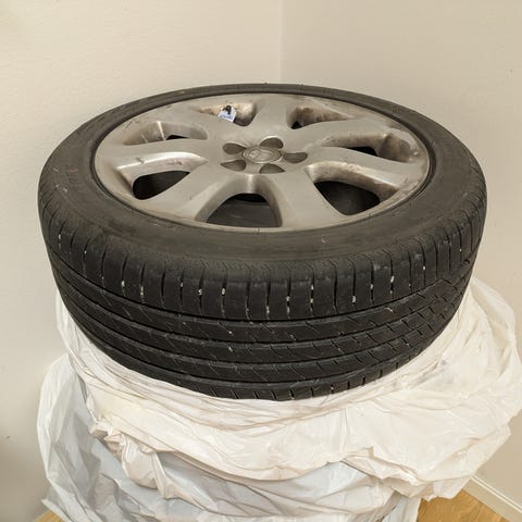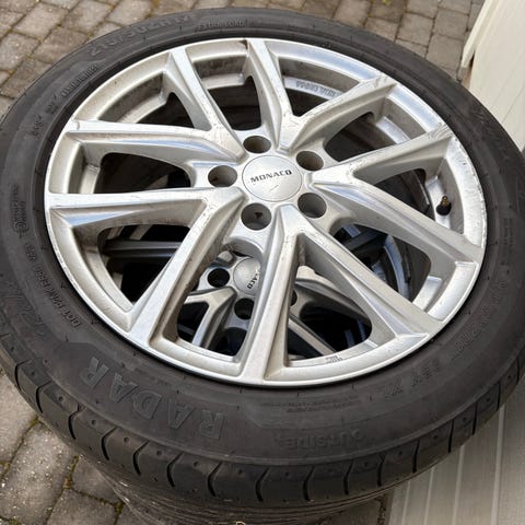 Hele og pene felger som bare trenger en vask og kanskje nye dekk om du ikke er som hu som hadde den før meg og kjører pigg foran og piggfri bak😂