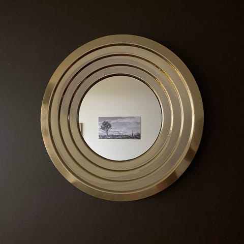 H&M Home speil med dekorativ ramme i metall. Speilet har en rektangulær form med flere mindre ruter langs kanten, noe som gir et geometrisk og moderne uttrykk. Egnet for veggmontering i ulike rom som stue, soverom eller gang.
