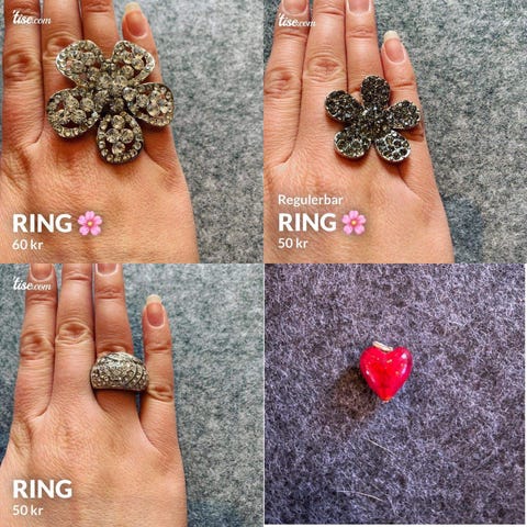 Rosa søte ringer💖Med diamanter, sløyfer og hjerter💖🎀🌸45kr stk🌸🎀💖