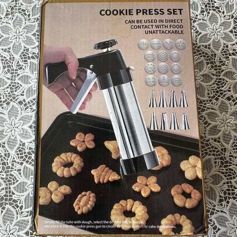 Rustfritt Stål Kakepress 12 Former for Perfekte Jevne Småkaker
