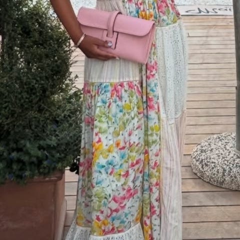 Nydelig rosa blomstrete maxikjole fra Bytimo til bryllup eller andre anledninger. Ny og ubrukt
