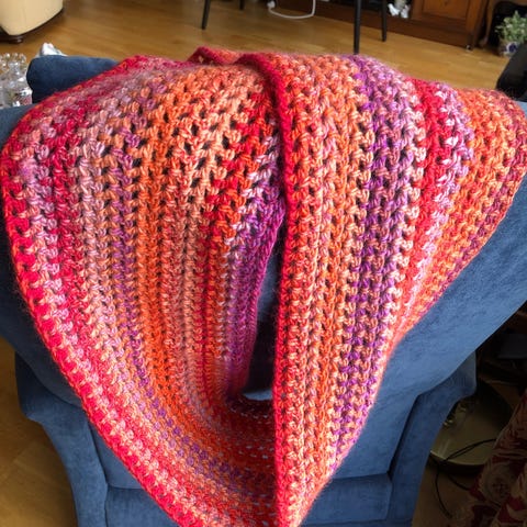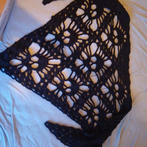 Heklet, grått skjerf. Ingen bruksmerker