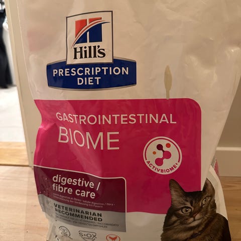 Vi måtte omstille katten til en annen fôr. Han har ikke lov å spise det lengre. Sekken er til overs helt ny og uåpnet.