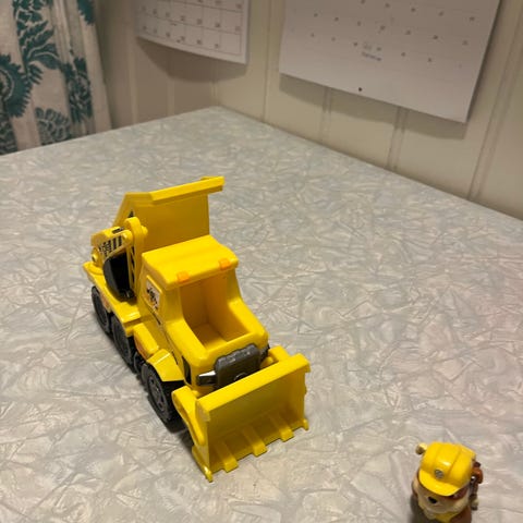 Paw Patrol lekebil med gravemaskin og tilhørende figuren Rubble! Knapt brukt, som ny